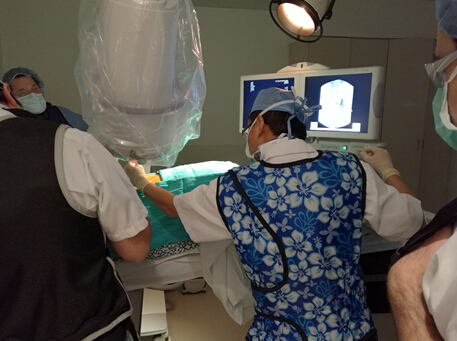 這里醫(yī)生的敬業(yè)精神令我感動(dòng)。疼痛科大部分手術(shù)都是在射線下完成的,每個(gè)操作都要踩線數(shù)十次,放射次數(shù)頻繁。雖然身著鉛衣、護(hù)脖套和護(hù)目鏡,但是一天下來醫(yī)生、護(hù)士和C型臂技師還是會(huì)接受到很多輻射,然而我從未聽到任何抱怨。為了達(dá)到佳手術(shù)位置,他們寧可不斷踩線定位也絕不含糊。鉛衣厚重,常常是一臺(tái)手術(shù)下來一身汗?jié)?。中午大家也都繼續(xù)工作,吃飯時(shí)間大約10至15分鐘,沒有任何休息,有些醫(yī)生為了使病人盡快得到醫(yī)治甚至免去午餐。每位醫(yī)護(hù)人員在工作中都按照流程認(rèn)真執(zhí)行,比如術(shù)前患者核對(duì),通常是護(hù)士主導(dǎo),每位醫(yī)生都會(huì)站到患者身旁仔細(xì)核對(duì)每個(gè)內(nèi)容。