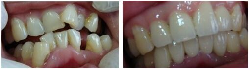 牙齒不齊又稱錯(cuò)頜畸形,是指兒童在生長發(fā)育過程中,由先天的遺傳因素或后天的環(huán)境因素導(dǎo)致的牙齒、頜骨、顱面的畸形。下面來看一組牙齒不齊矯正前后對比圖