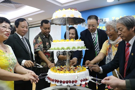 2015年10月16日,第三屆現(xiàn)代國際醫(yī)療交流日暨無國界腫瘤防治志愿者中心成立儀式在廣州現(xiàn)代醫(yī)院舉行。借由(中新合資)廣州現(xiàn)代醫(yī)院成立10周年的歷史性跨越慶典,來自印尼、越南、菲律賓、泰國等多個國家的無國界腫瘤防治志愿者代表同聚廣州現(xiàn)代醫(yī)院,在儀式現(xiàn)場他們一起分享了各自的抗癌經(jīng)歷,傳播正能量。同時,醫(yī)院組織的無國界腫瘤防治志愿者中心也宣布正式成立。