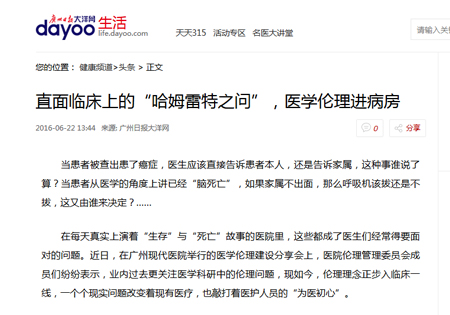 以下是廣州日?qǐng)?bào)大洋網(wǎng)對(duì)醫(yī)學(xué)倫理建設(shè)深度分析的全文: