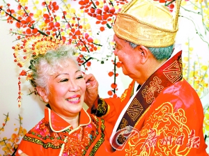 近三年來,王優(yōu)華在丈夫的陪同下堅持每六個月到(中新合資)廣州現(xiàn)代醫(yī)院復查一次。今年是王優(yōu)華和陳永遠50周年金婚,眼看復診的時間又到了,又恰逢中國傳統(tǒng)節(jié)日七夕,大家便決定為他們舉辦一場漢式金婚典禮。