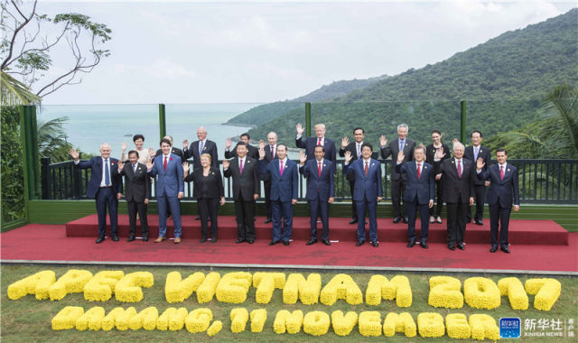 ▲2017年11月11日,亞太經(jīng)合組織第二十五次領(lǐng)導(dǎo)人非正式會(huì)議在越南峴港舉行。習(xí)近平出席并發(fā)表題為《攜手譜寫亞太合作共贏新篇章》的重要講話。這是會(huì)議期間,習(xí)近平同其他亞太經(jīng)合組織成員經(jīng)濟(jì)體領(lǐng)導(dǎo)人、代表合影。新華社記者 李濤 攝