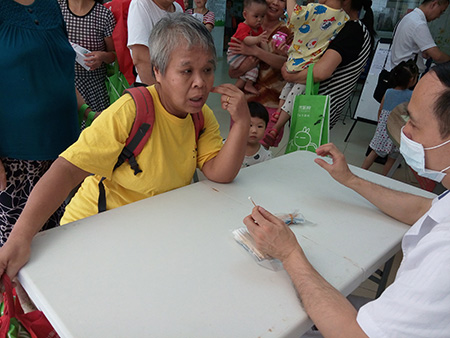 另外,為了普及牙病防治知識,幫助廣大居民了解自身的口腔健康狀況,增強口腔保健意識,并及時作出行之有效的口腔保健計劃和干預(yù)措施。周斌主任講座結(jié)束后,在沙東街道開展免費口腔義診活動,眾多社區(qū)居民前來診治。