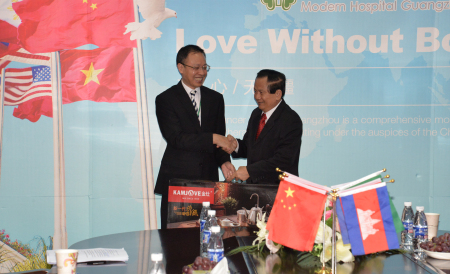 【廣州現(xiàn)代醫(yī)院院領(lǐng)導(dǎo)與柬埔寨衛(wèi)生部代表團(tuán)合影】