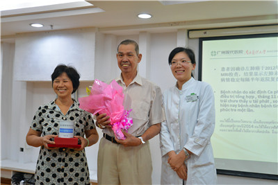 同樣在我院獲得好的效果的還有來自越南的黃國華,他于2012年因肺癌來到我院,經(jīng)過綜合治療后,現(xiàn)在病情穩(wěn)定只需每隔半年返院復(fù)查。“感謝廣州現(xiàn)代醫(yī)院全體醫(yī)護(hù)人員給了我重生的機(jī)會(huì),希望大家都要有信心。”這是黃國華發(fā)自心底的感言。