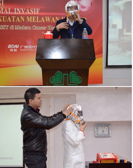 廣州現(xiàn)代醫(yī)院消防培訓(xùn)現(xiàn)場(chǎng)(上)和李德佳教官演示滅火器的使用(下)