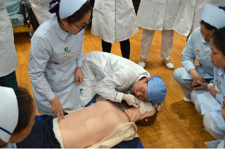 2月23、24日下午3點,(中新合資)廣州現(xiàn)代醫(yī)院護理部分批組織全院員工“心肺復蘇”操作演示培訓,確保每一位在崗職工時刻都具備緊急搶救的能力。醫(yī)院9樓手術室護士廖海紅為全體參加培訓的人員進行操作演示,從胸外按壓到人工呼吸都給予詳細的講解與實操,員工在觀看操作的同時提出相關疑問并記錄下來。
