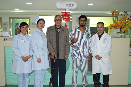 今年25歲的小貝是來自也門的年輕企業(yè)家,在廣州經(jīng)營著一家貿(mào)易公司。他因?yàn)樘悄虿⊥Y酸中毒急癥入院。“剛開始在其他醫(yī)院就診時(shí),病人只能聽從醫(yī)生的安排,醫(yī)生從來不會(huì)關(guān)注病人的訴求。”小貝說,“后來到廣州現(xiàn)代醫(yī)院,發(fā)現(xiàn)這里整體氛圍很好,就堅(jiān)決要在此住院治療。”剛?cè)朐簳r(shí),小貝病情很嚴(yán)重,在醫(yī)護(hù)人員的細(xì)心治療與關(guān)照下,他的病情有所好轉(zhuǎn),精神也好了很多。小貝表示,廣州現(xiàn)代醫(yī)院的醫(yī)生護(hù)士待他就像朋友一般,除了治療時(shí)的交流外,平時(shí)醫(yī)生護(hù)士也會(huì)到病房跟他聊天。“這里的醫(yī)生會(huì)尊重我的訴求,根據(jù)我的意愿來制定治療方案,這讓我很感動(dòng)。”小貝說,“來這里住院就跟在家里一樣,不壓抑,很舒服。剛開始患病時(shí)我說不了話,吃不下東西,住院幾天后我整個(gè)人精神都好了很多,后來朋友還帶了家鄉(xiāng)的飛餅過來給我吃。”