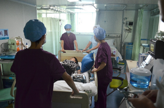 隨后醫(yī)護(hù)人員將患者轉(zhuǎn)送ICU,接診醫(yī)生葉登主任與ICU劉斌主任交接病情,患者留在ICU進(jìn)行后續(xù)治療。