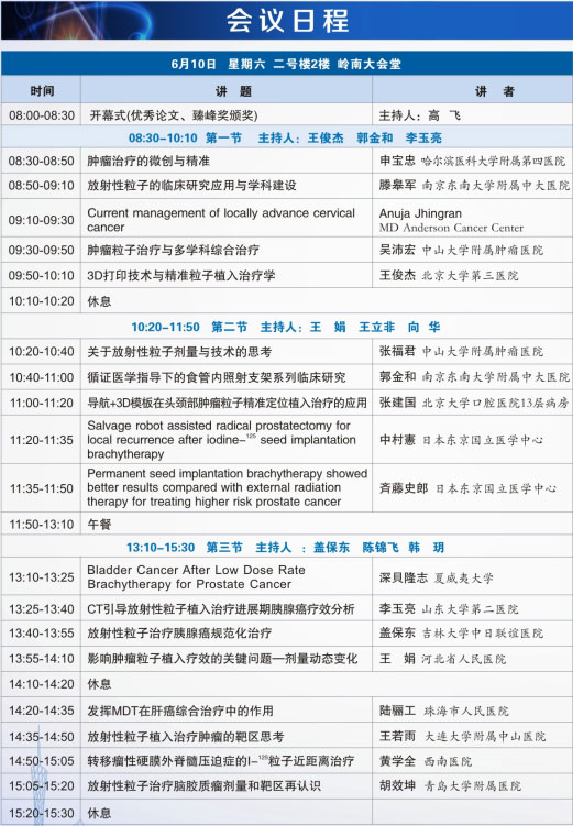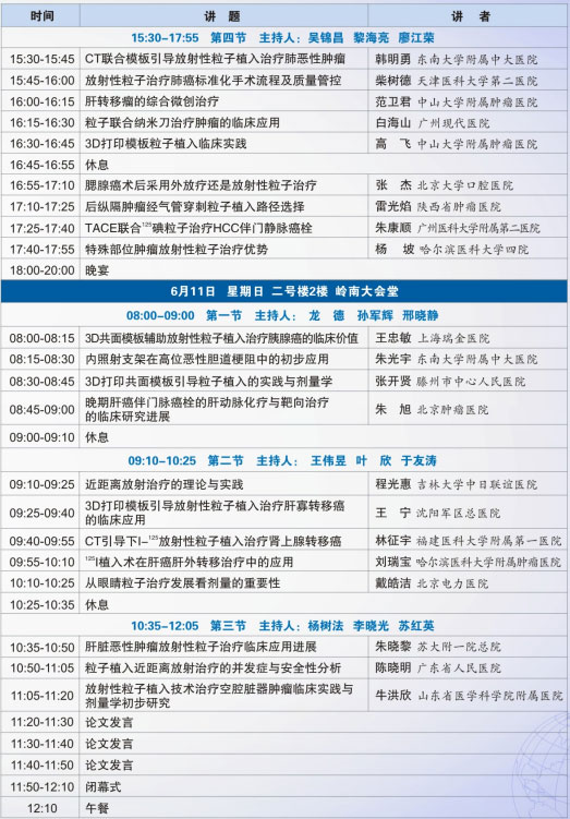 第十七屆全國放射性粒子治療腫瘤學(xué)術(shù)大會(huì)會(huì)議議程: