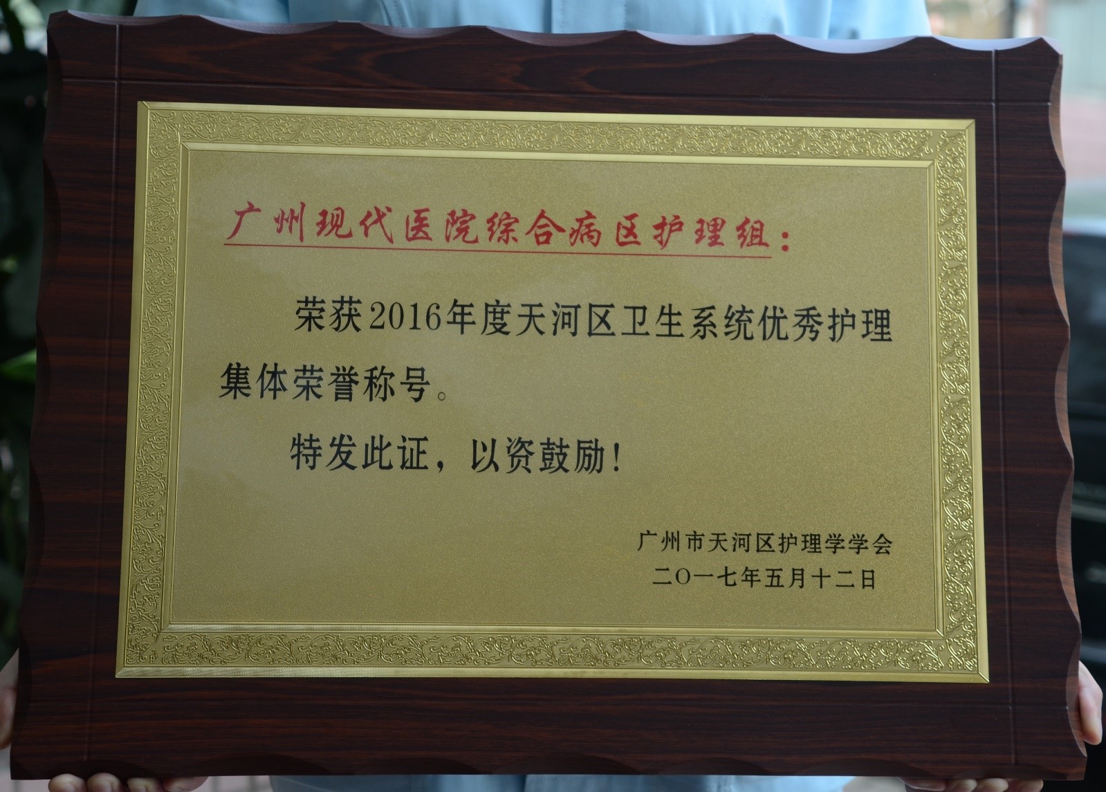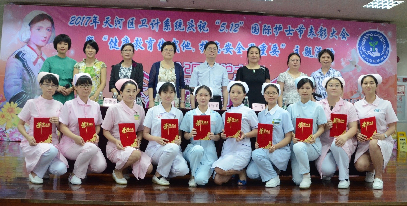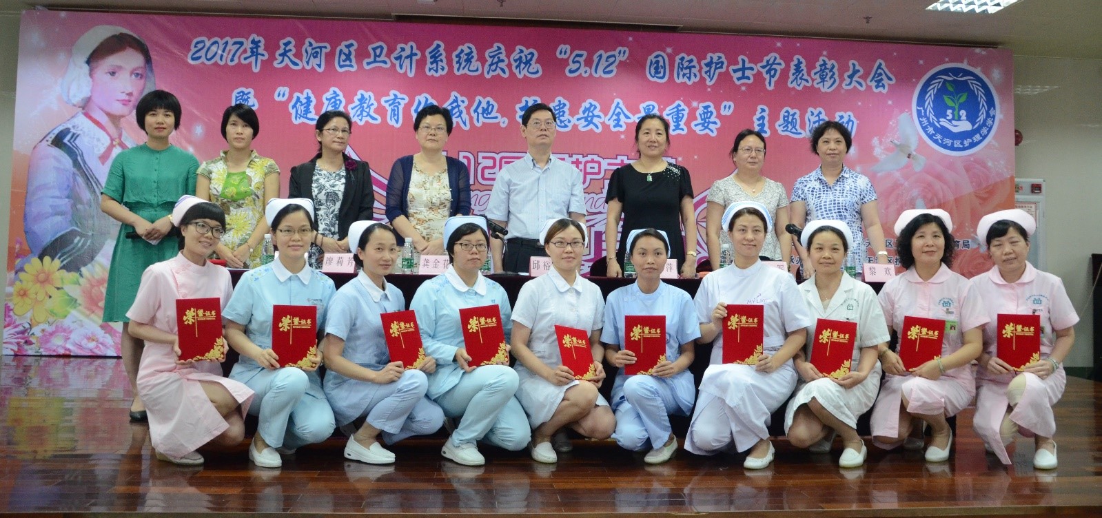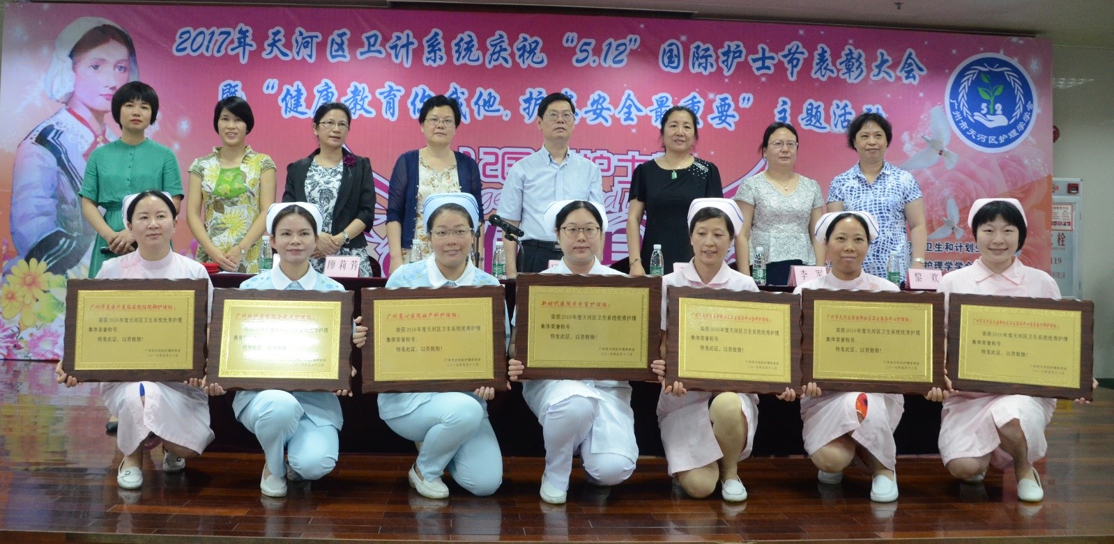 2017年5月11日下午,“天河區(qū)衛(wèi)計(jì)系統(tǒng)慶祝‘5.12’國(guó)際護(hù)士節(jié)表彰大會(huì)”在天河區(qū)中醫(yī)院隆重舉行。廣州現(xiàn)代醫(yī)院綜合病區(qū)護(hù)理組榮獲“2016年度天河區(qū)衛(wèi)生系統(tǒng)優(yōu)秀護(hù)理集體”榮譽(yù)稱號(hào),腫瘤三病區(qū)的肖娟護(hù)士長(zhǎng)榮獲“天河區(qū)優(yōu)秀護(hù)士長(zhǎng)”榮譽(yù)稱號(hào),綜合病區(qū)的鄢璟護(hù)士、腫瘤八病區(qū)的陸雪蓮護(hù)士榮獲“天河區(qū)優(yōu)秀護(hù)士”榮譽(yù)稱號(hào),綜合病區(qū)的鐘玲護(hù)士榮獲“天河區(qū)護(hù)理技能操作能手”榮譽(yù)稱號(hào)。
