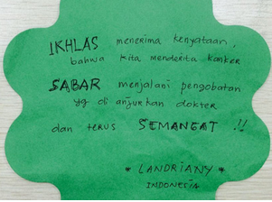 蘭迪雅尼來自印尼泗水,今年已經50歲的她在2014年被確診為卵巢癌,手術和放化療曾讓她頭發(fā)全部脫落,印尼本地醫(yī)生曾以“病情太過嚴重”而放棄對她的手術治療,但是篤信基督的她一直都這樣勸慰自己:“如果不能改變,那就接受癌癥,樂觀治療,一切都會變得更好。“