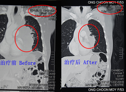 黃春妹治療前后CT檢查結(jié)果對(duì)比