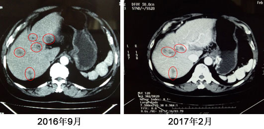 平靜安穩(wěn)的日子過了5年,2014年陳先生感覺肝部有些疼痛,去醫(yī)院檢查后發(fā)現(xiàn)肝癌復(fù)發(fā)了,且已惡化到4期。為了避免再經(jīng)歷化療的痛苦,陳先生積極尋找別的治療方法。2014年至2015年底,他輾轉(zhuǎn)中國(guó)和馬來西亞嘗試多種治療,但效果很不好,在檳城檢查時(shí)發(fā)現(xiàn)肝部的腫瘤已經(jīng)有6.3cm了。